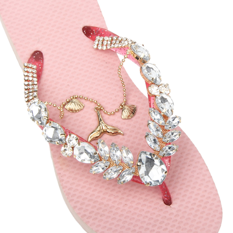 Suministro de fábrica, joyería rosa de alta calidad, accesorios de Chanclas de cristal, decoración de Chanclas de moda para mujer, zapatos de playa